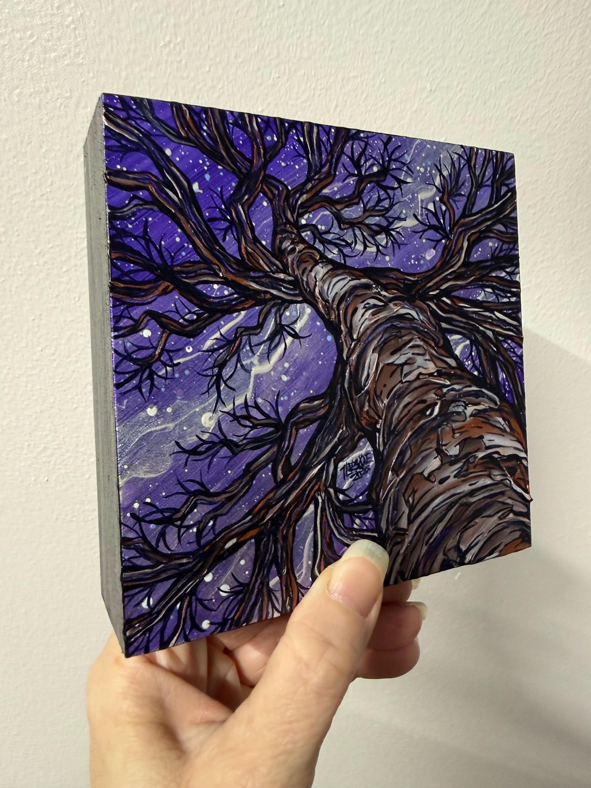 5” height x 5” width acrylic painting on 1.5” deep cradled wood panel - piece can also sit on shelf or hang in the wall