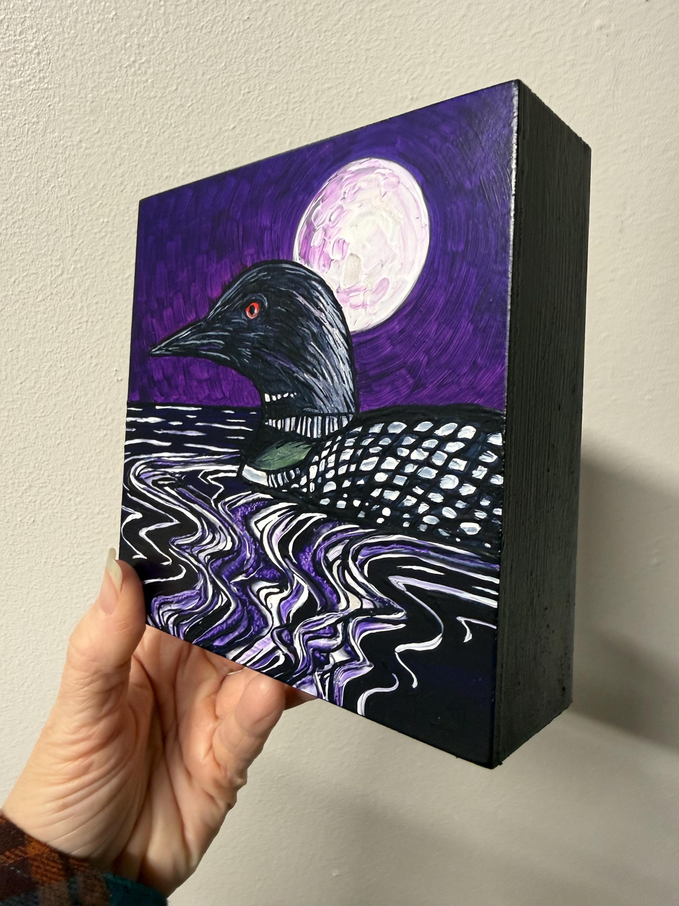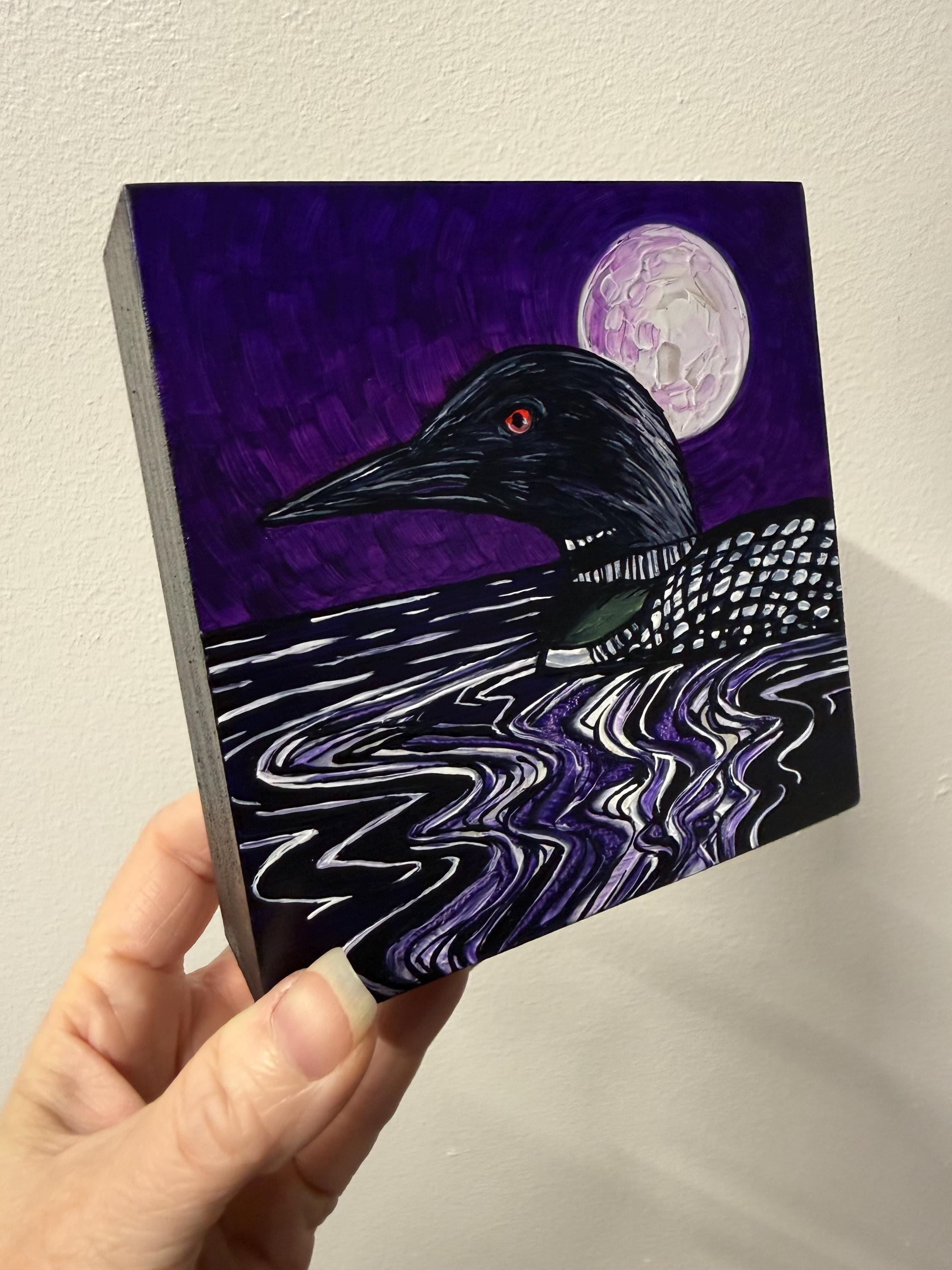 5” height x 5” width acrylic painting on 1.5” deep cradled wood panel - piece can also sit on shelf or hang in the wall