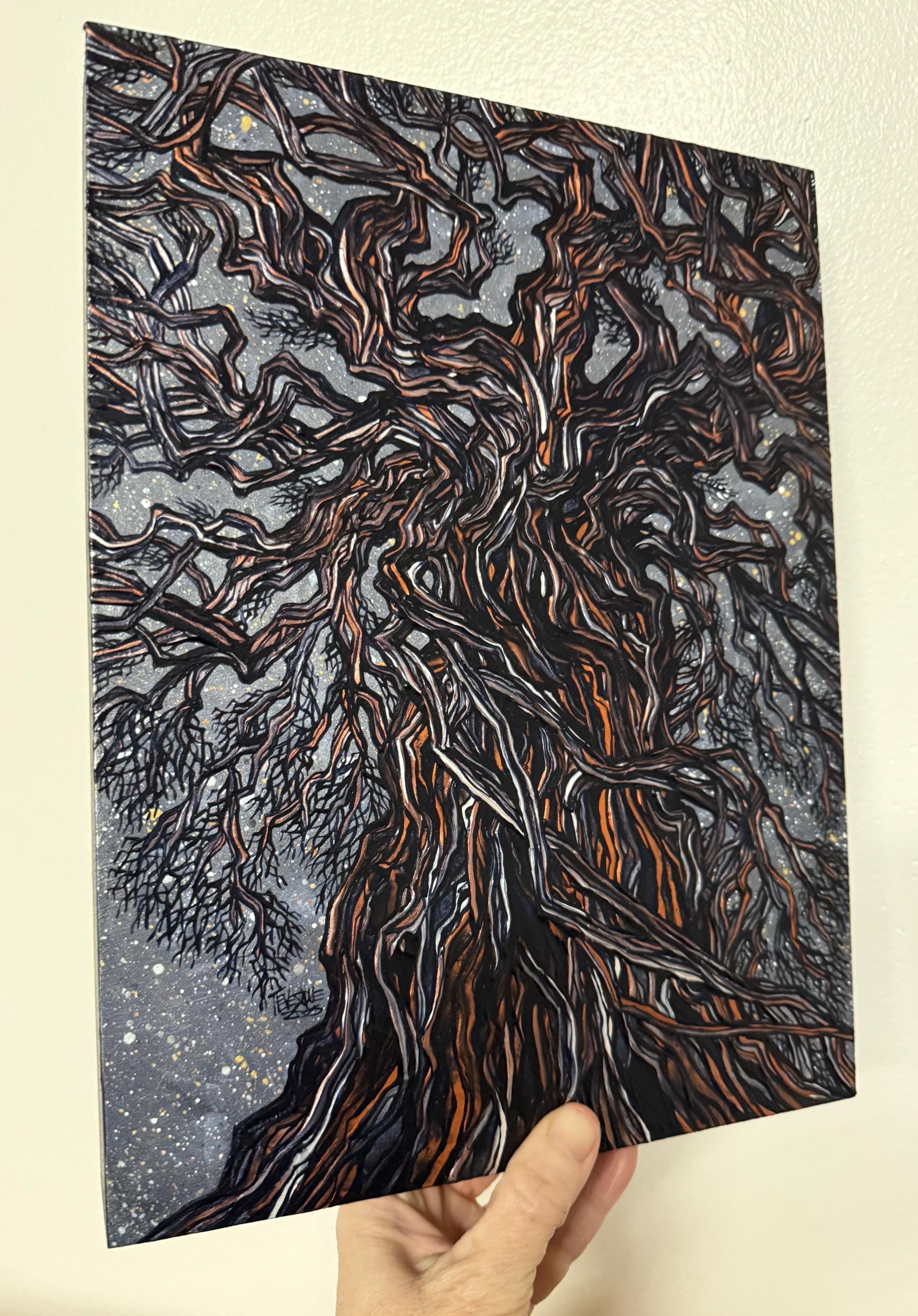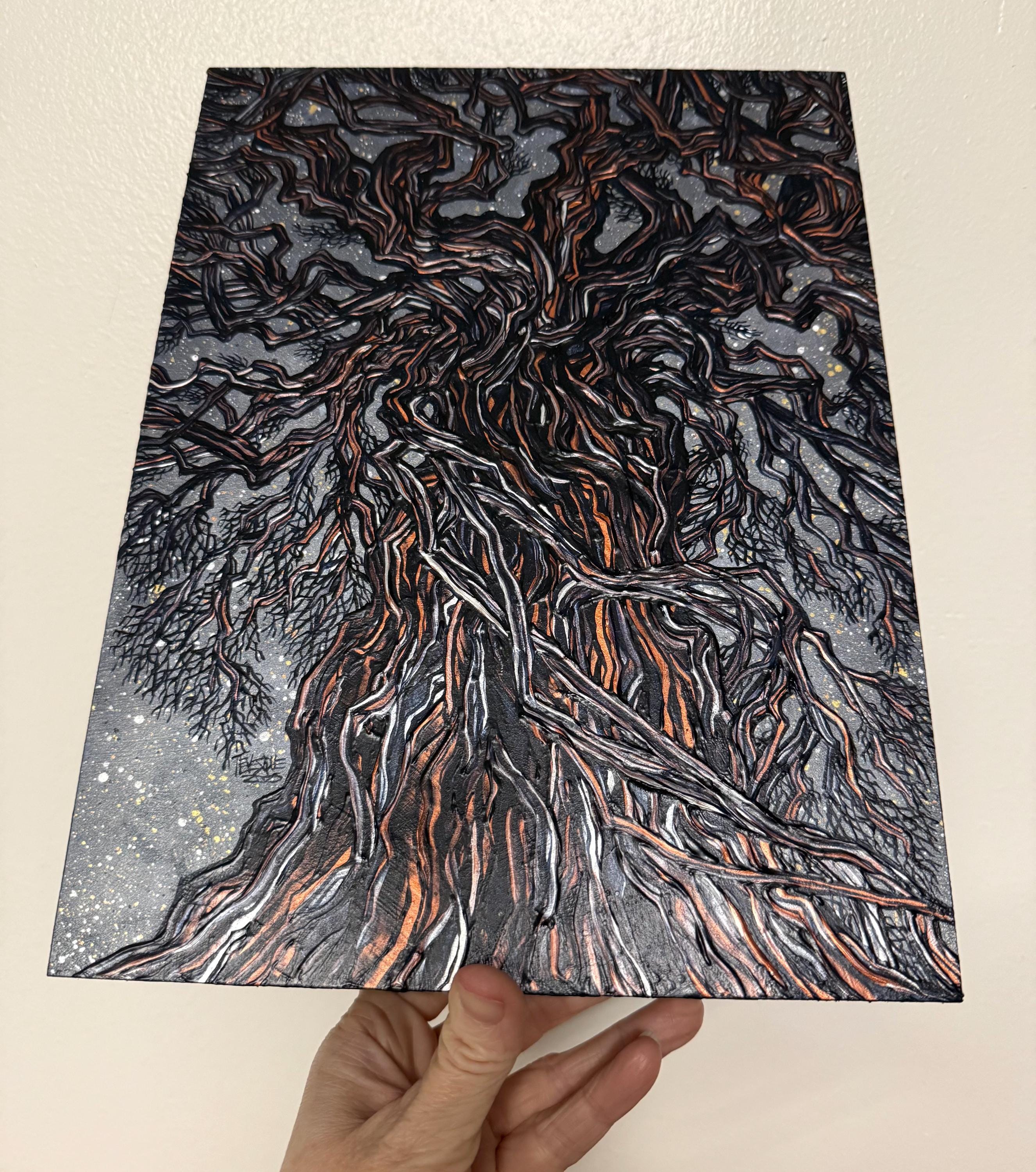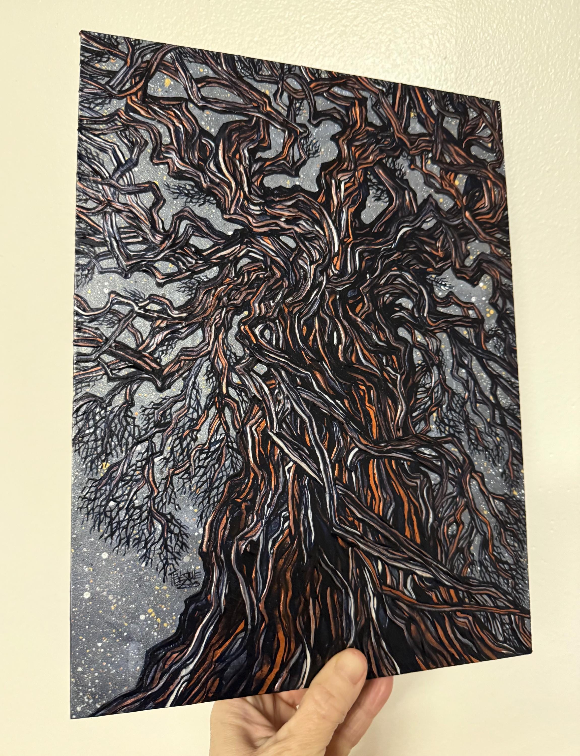 Get lost in all the intricate details of this lovely iridescent acrylic painting.