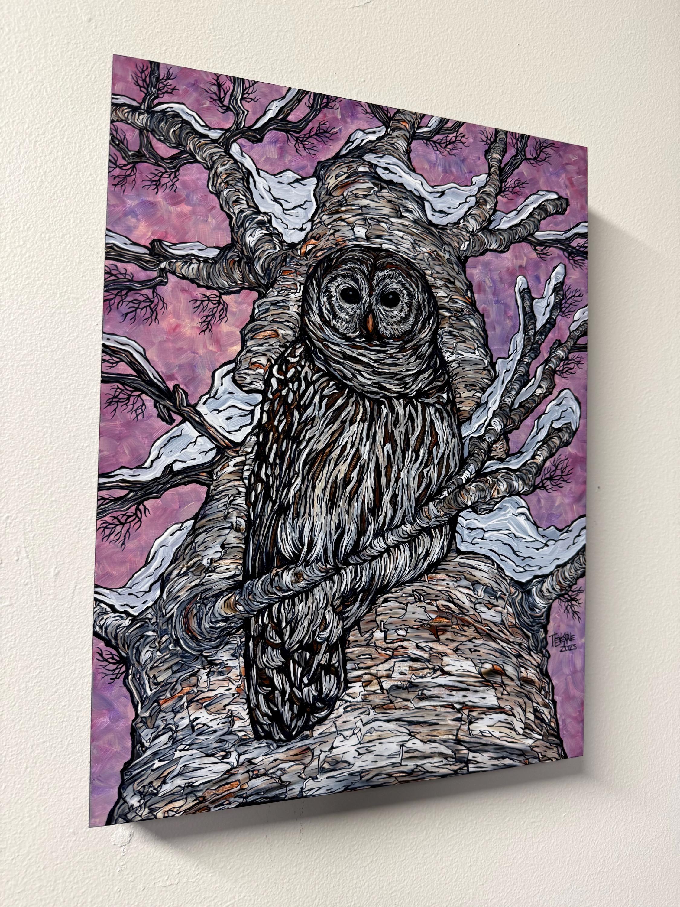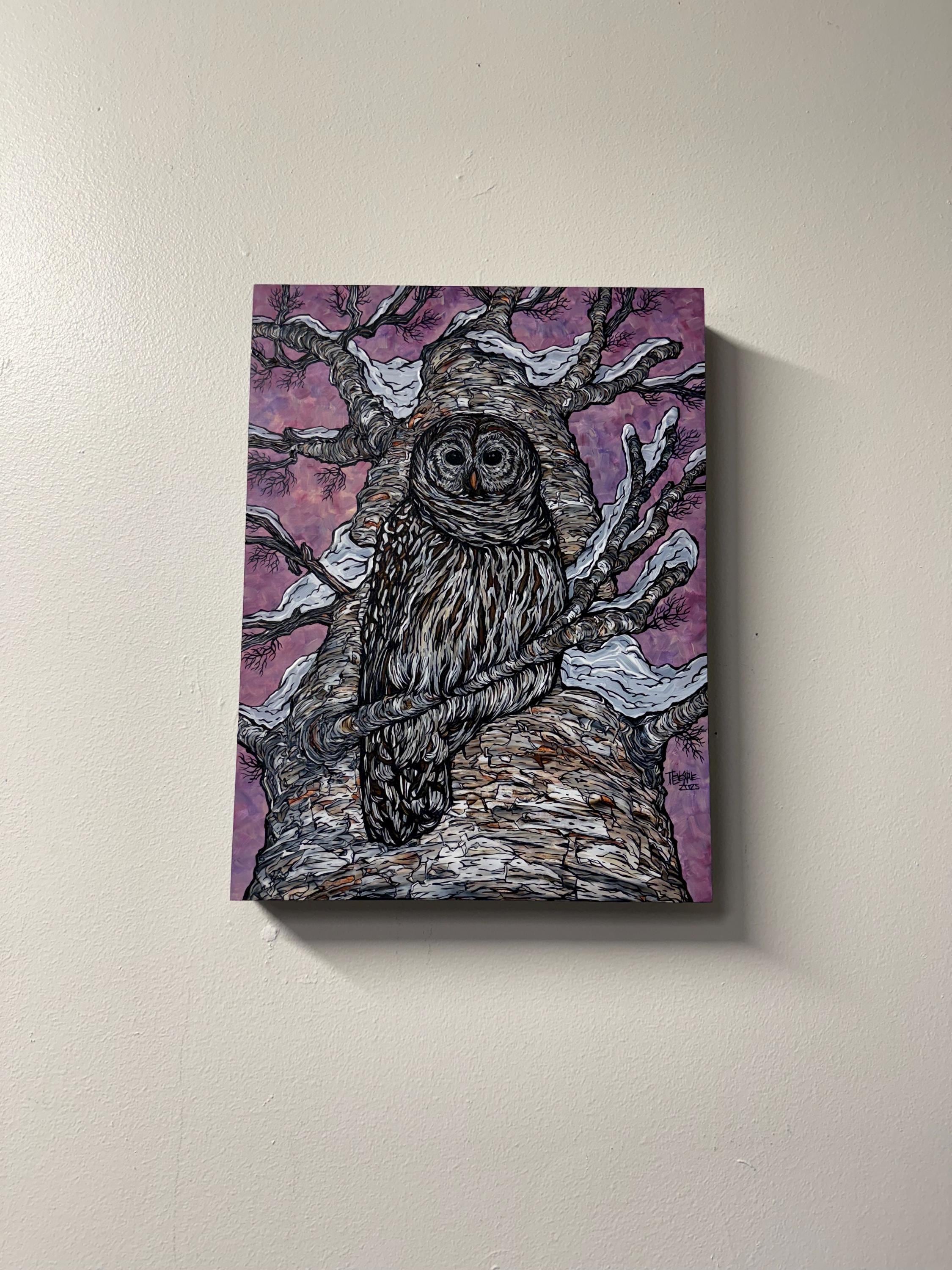 This lovely acrylic painting by Tracy Levesque measures 16” H x 12” W and is painted on cradled wood panel. The edges are painted black so you do not need to frame the painting. Ready to hang and varnished.