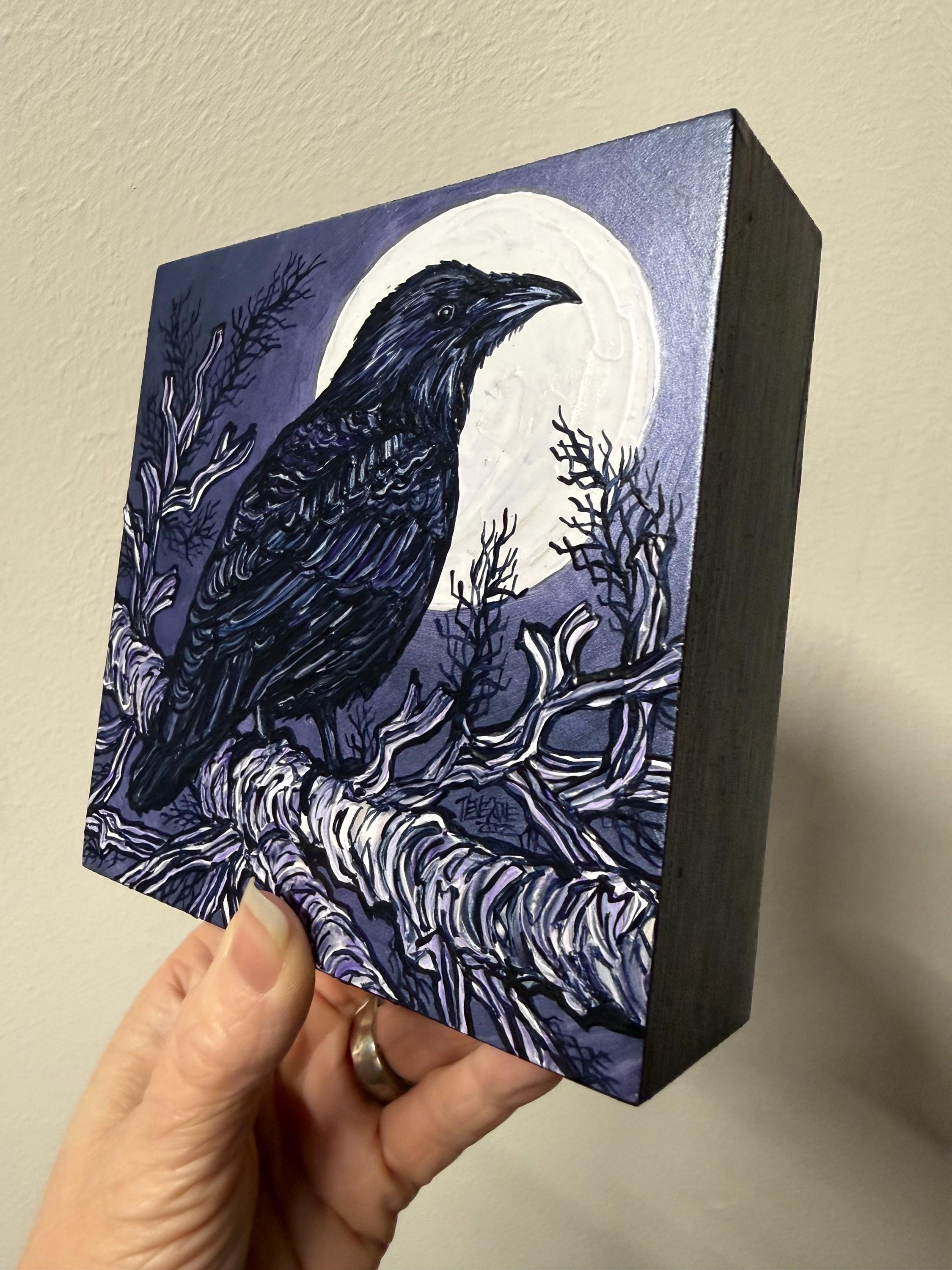 An intrepid raven basking in the the moonlight.