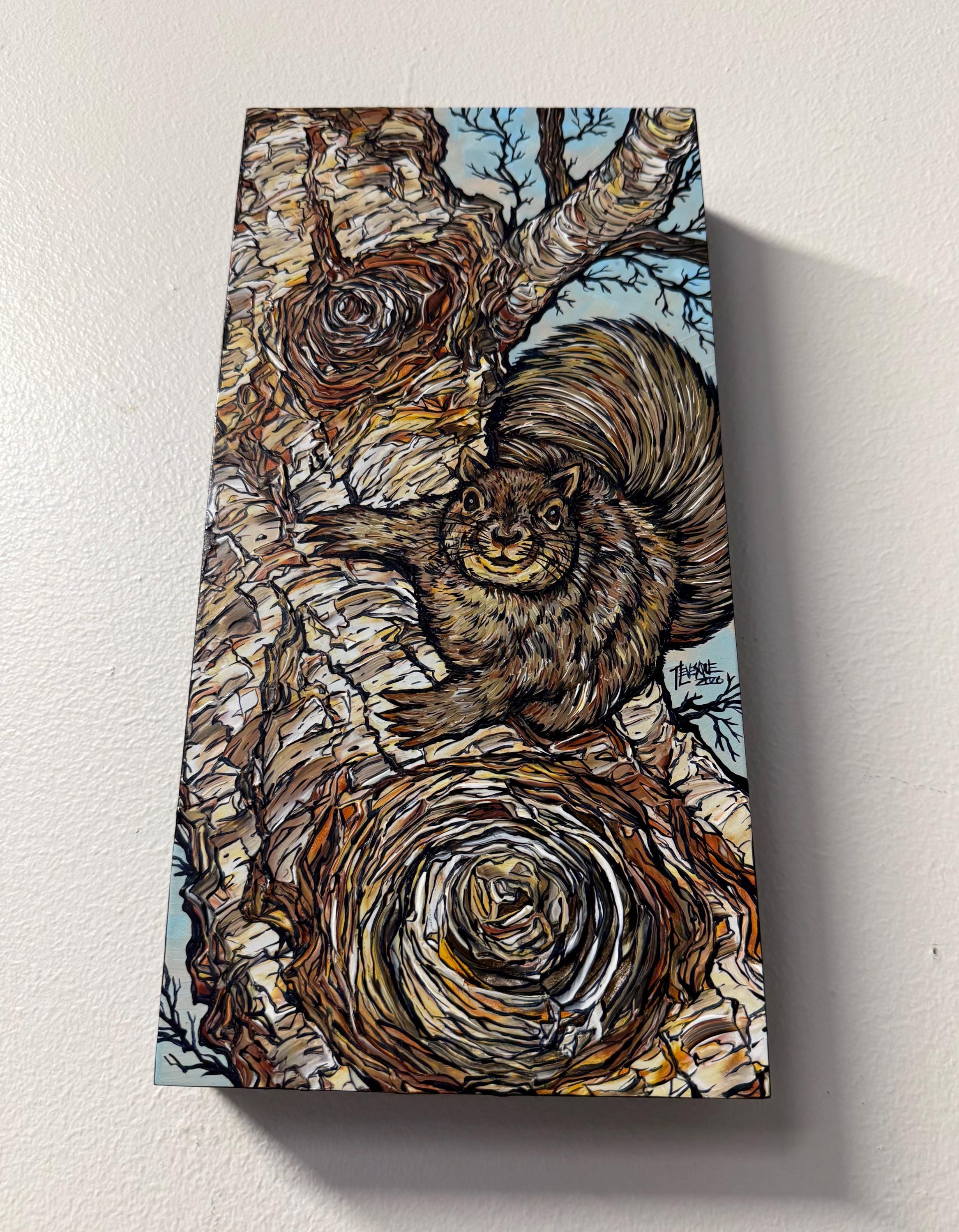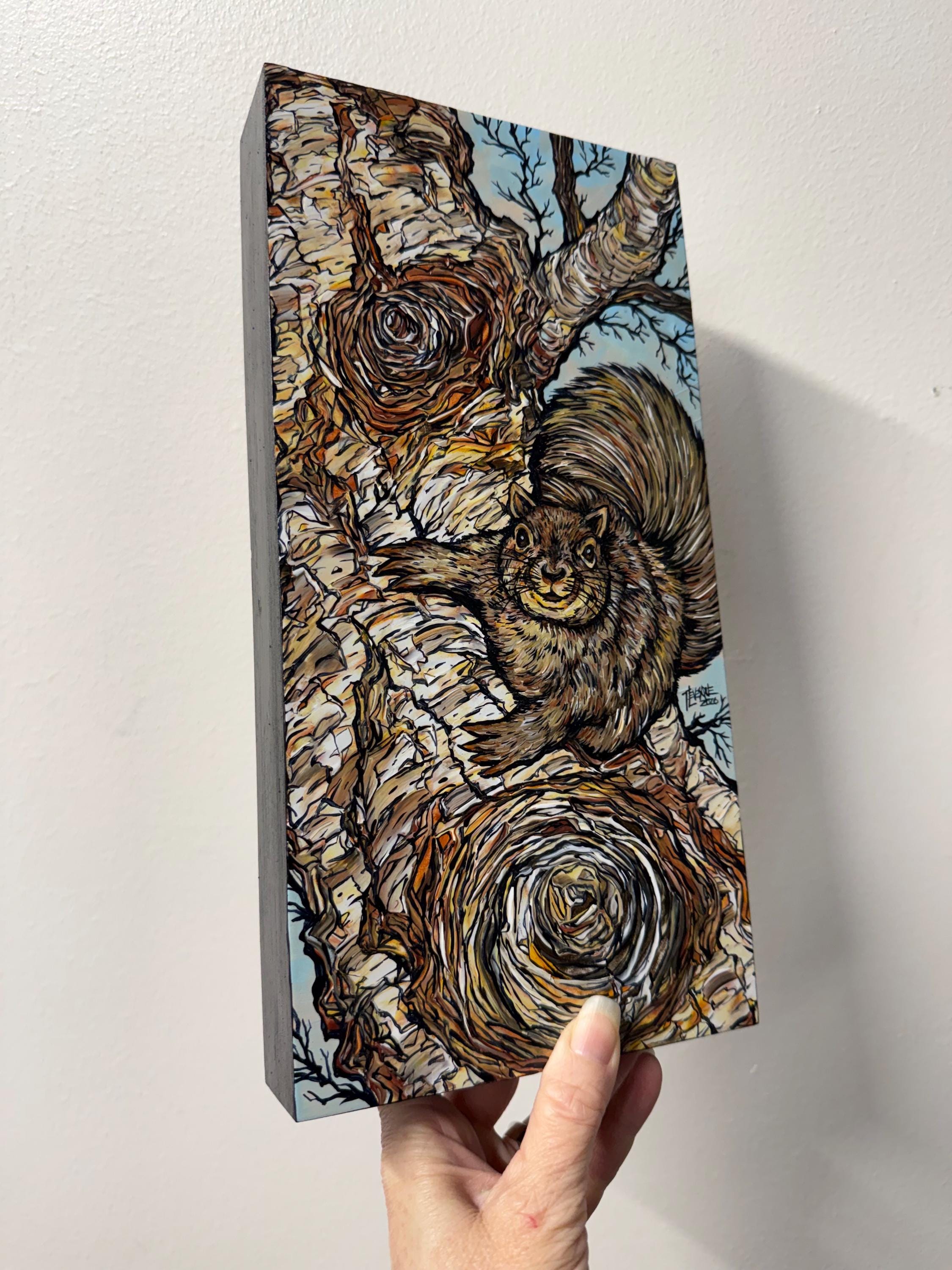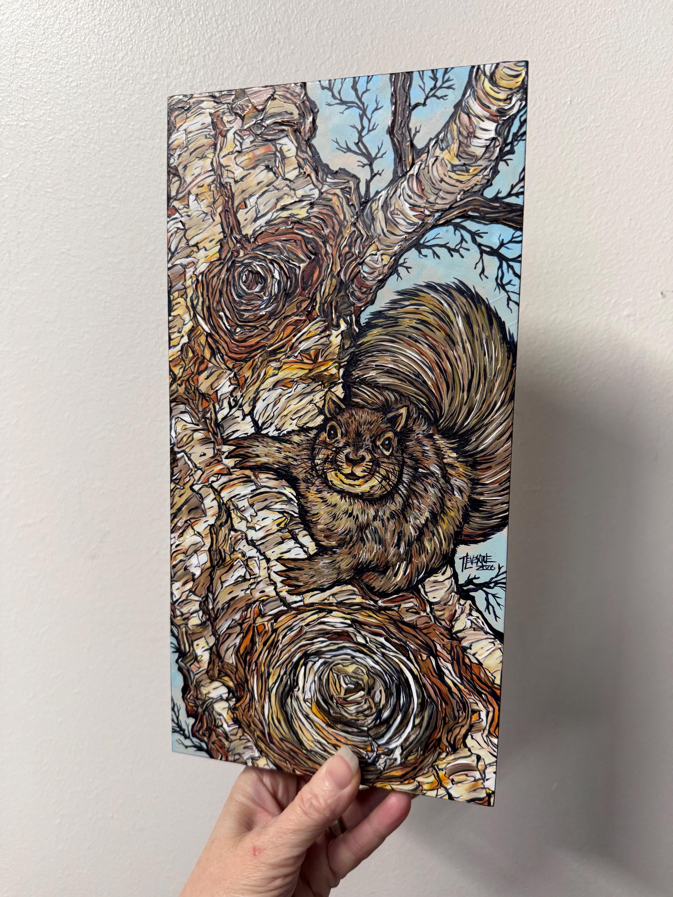 This adorable little red squirrel in a birch tree will fill your days with delight.
