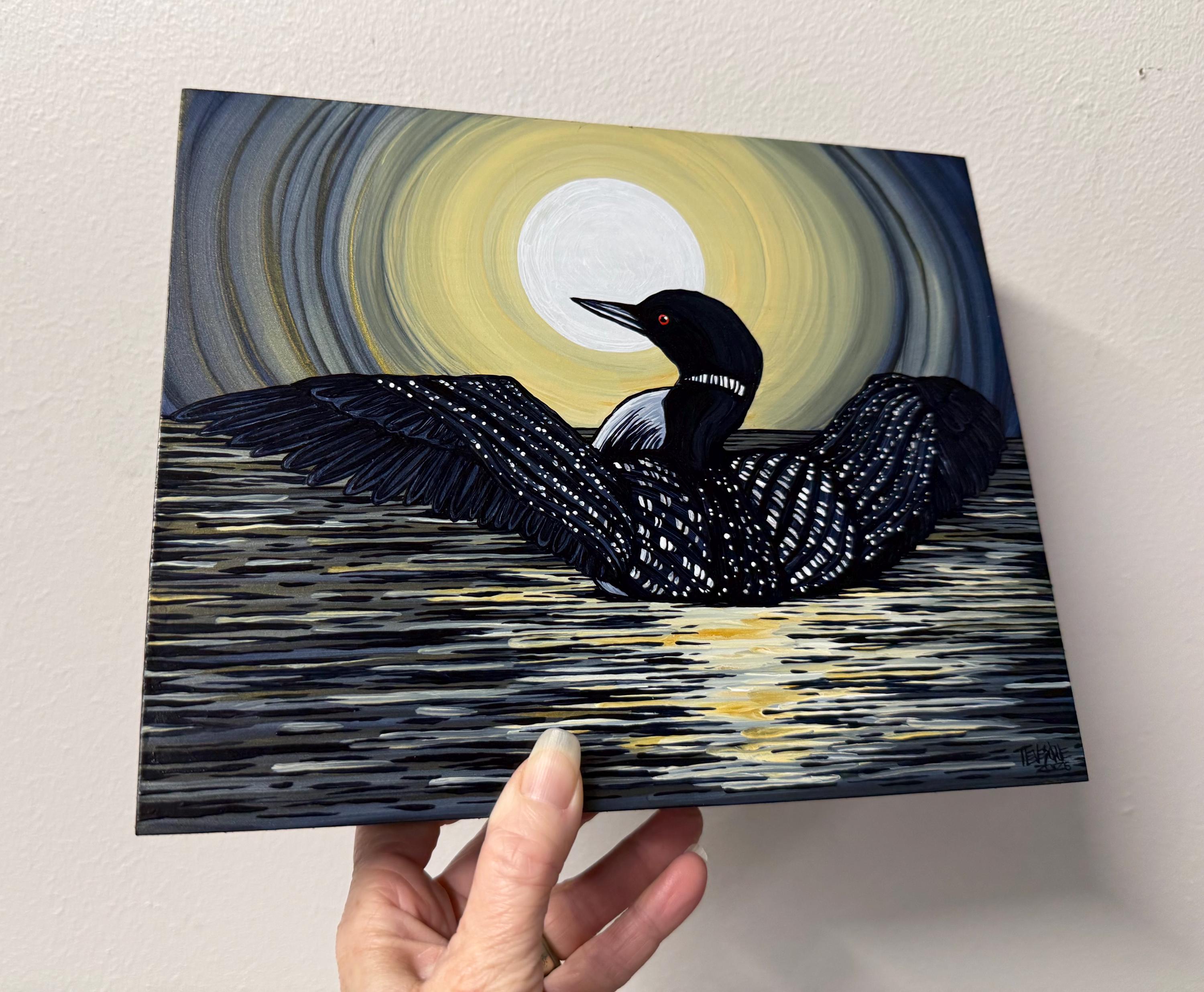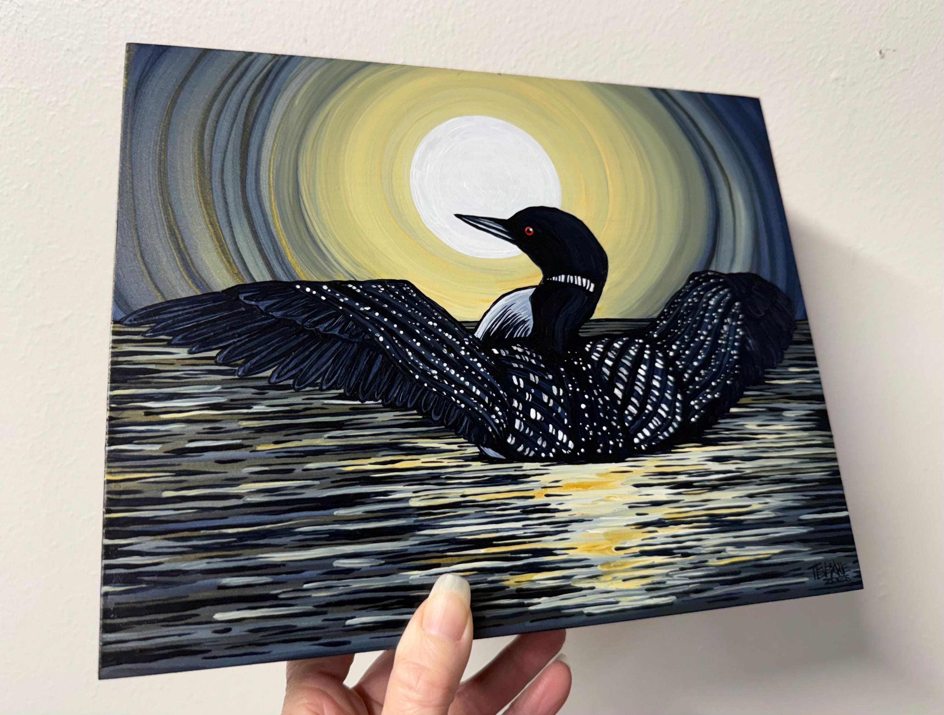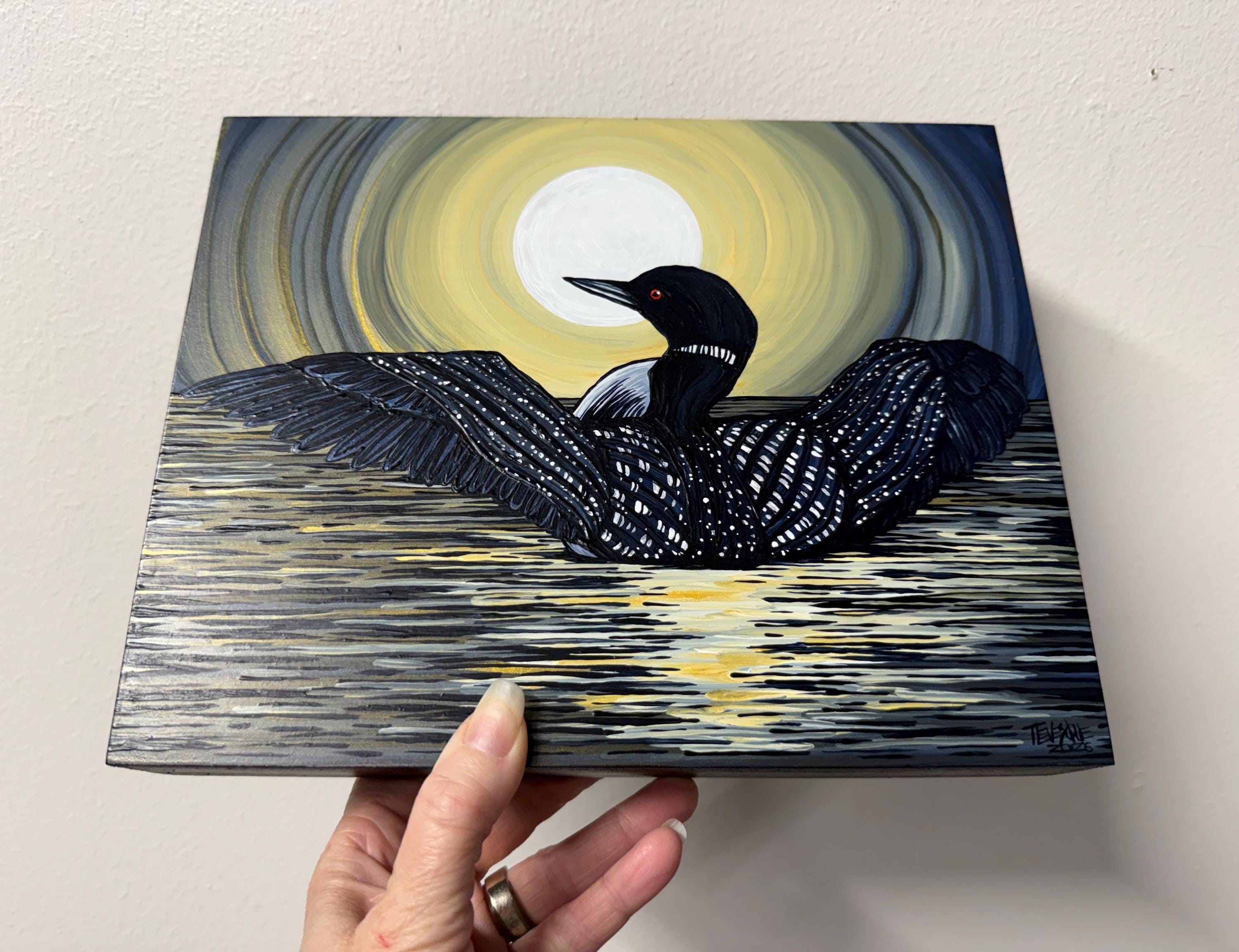 8x10” Original acrylic painting on 1.5” deep cradled wood panel by Tracy Levesque. Painting is varnished with the edges are painted black for a clean ready-to-hang finish. Painting has hanging wire on the back but may also sit nicely on a shelf.
