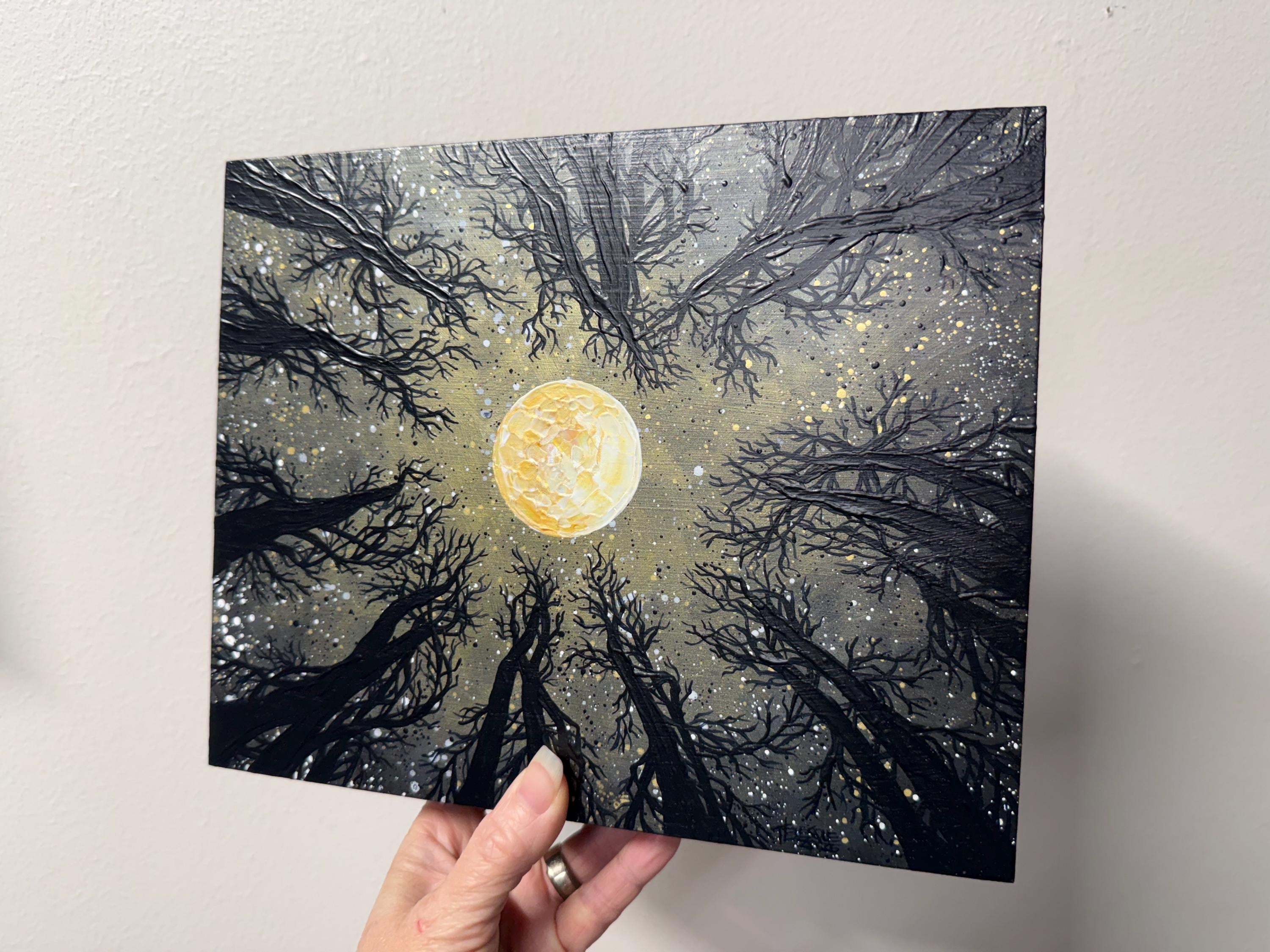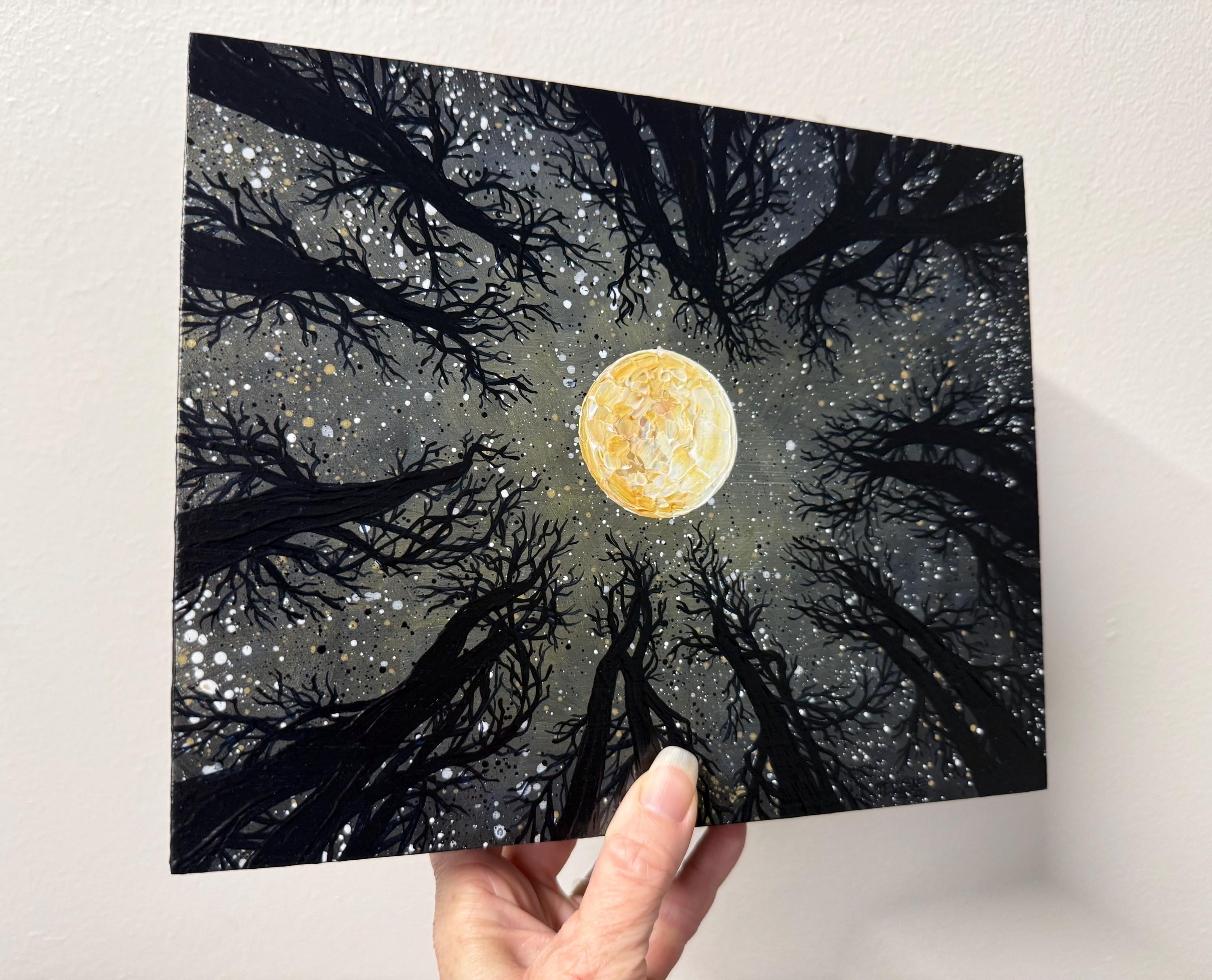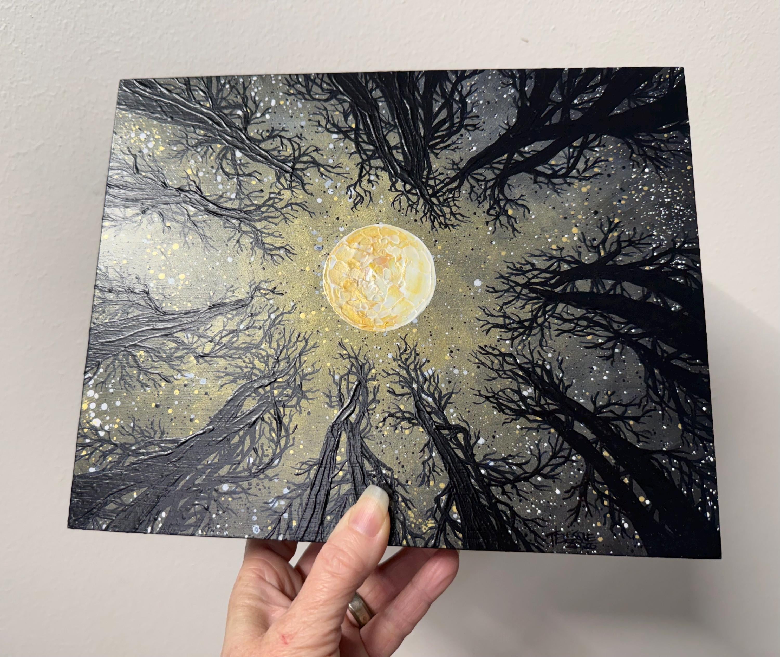 8x10” Original acrylic painting on 1.5” deep cradled wood panel by Tracy Levesque. Painting is varnished with the edges are painted black for a clean ready-to-hang finish. Painting has hanging wire on the back but may also sit nicely on a shelf.