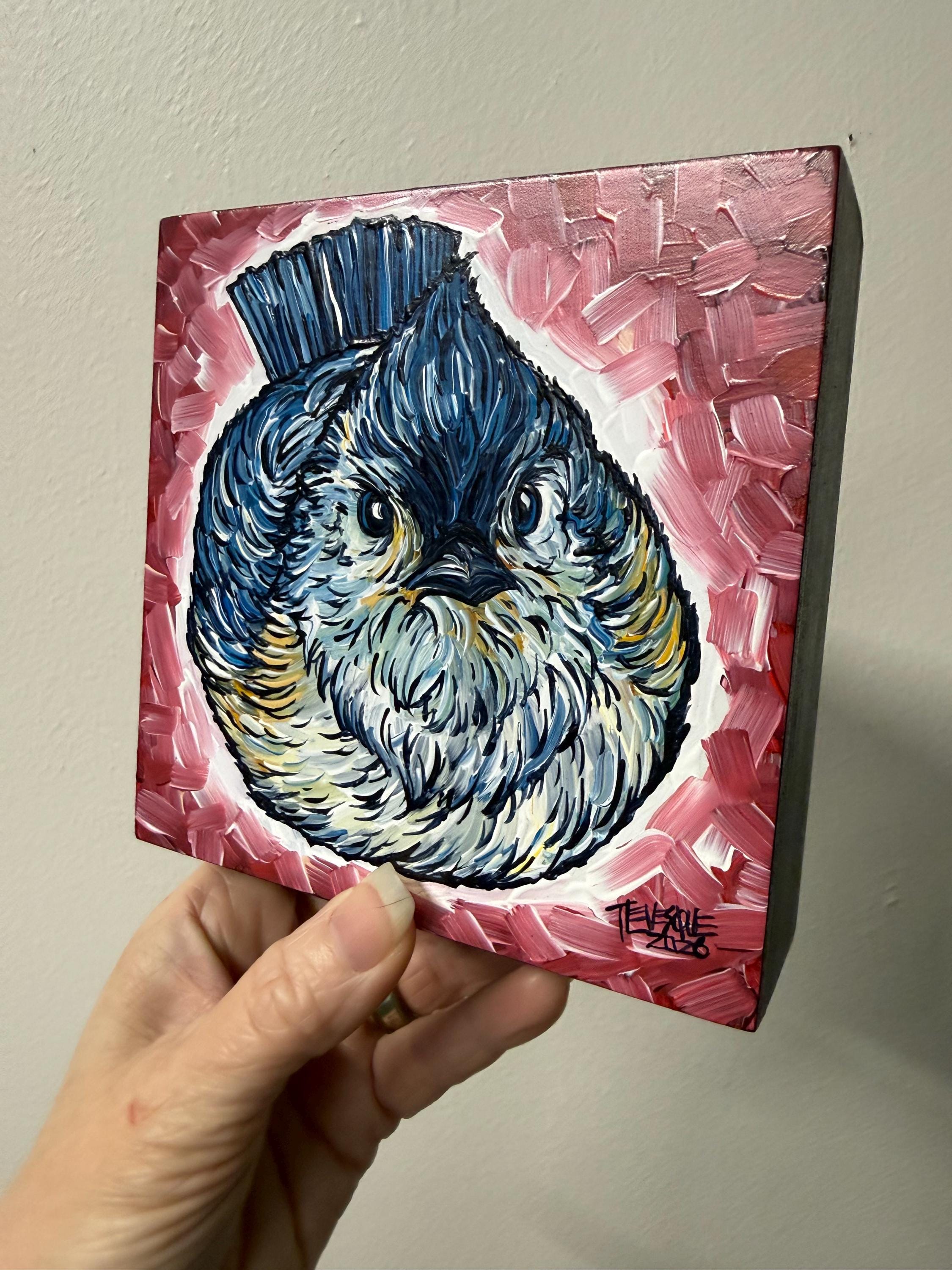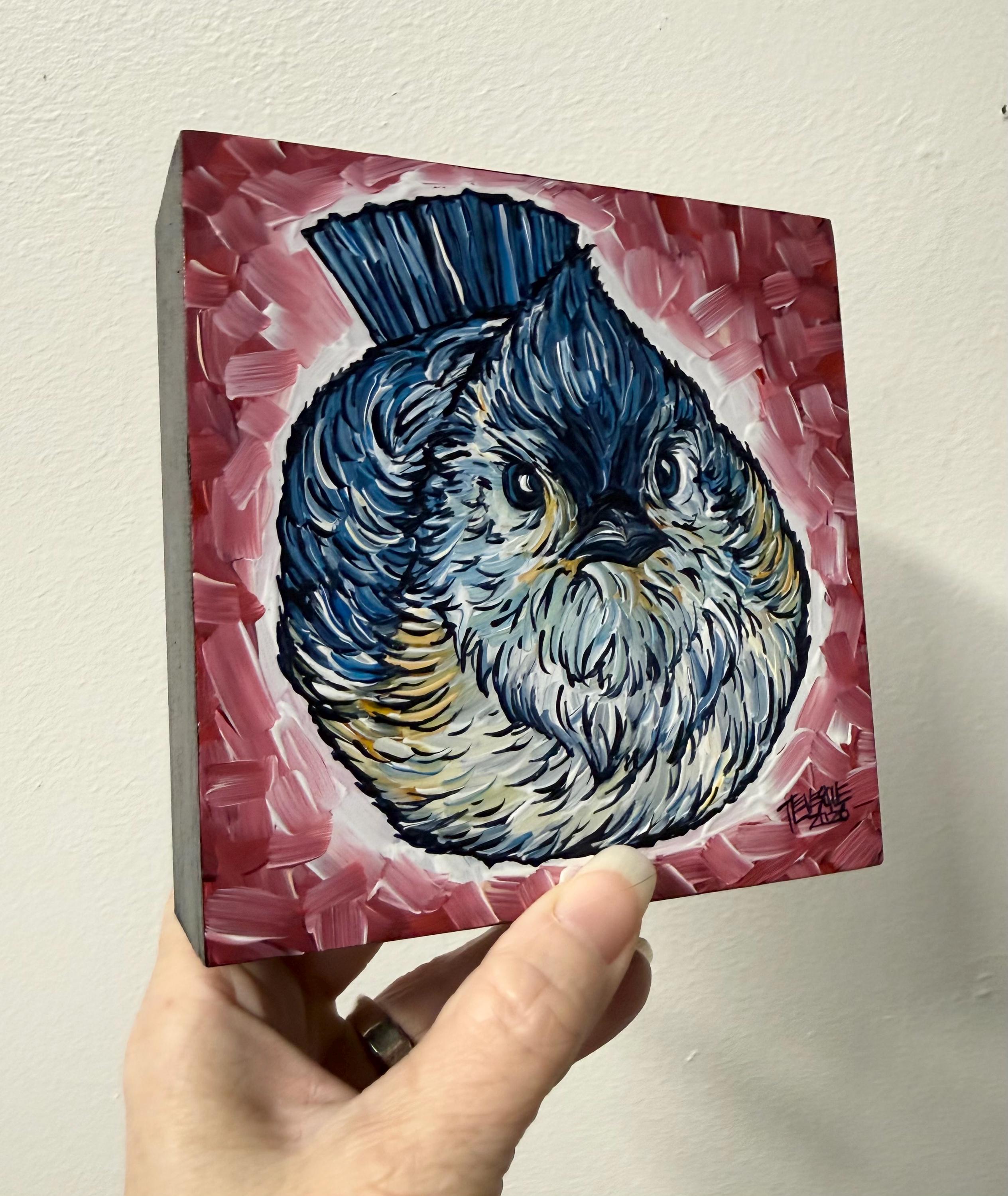 5x5” Original acrylic painting on 1.5” deep cradled wood panel by Tracy Levesque. Painting is varnished with the edges are painted black for a clean ready-to-hang finish. Painting has hanging hook on the back but may also sit nicely on a shelf.